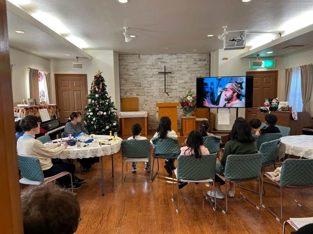 子どもクリスマス会では、近隣からたくさんの子どもたちが集まり、マジックショー、チョコレートフォンデュ、おりがみ工作などを楽しみ、最後は降誕の映画を見て、子どもたちにクリスマスの本当の意味を伝えました。